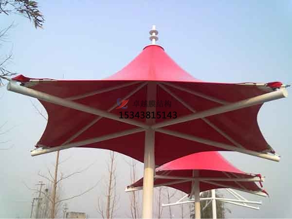一個城市的中心區(qū)反映一個城市的地理風貌和民族風情,同時,也是一個城市文化發(fā)展程度的標志。而景觀設計要求其具有廣泛的可讀性、雅俗共賞,既有超凡脫俗的藝術價值,又能使大眾喜聞樂見與大眾息息相通。膜結構以其輕盈飄逸的造型、柔美并帶有力量的曲線和大跨度和大空間的鮮明個性和標識性,應用于城市小品設計中。
