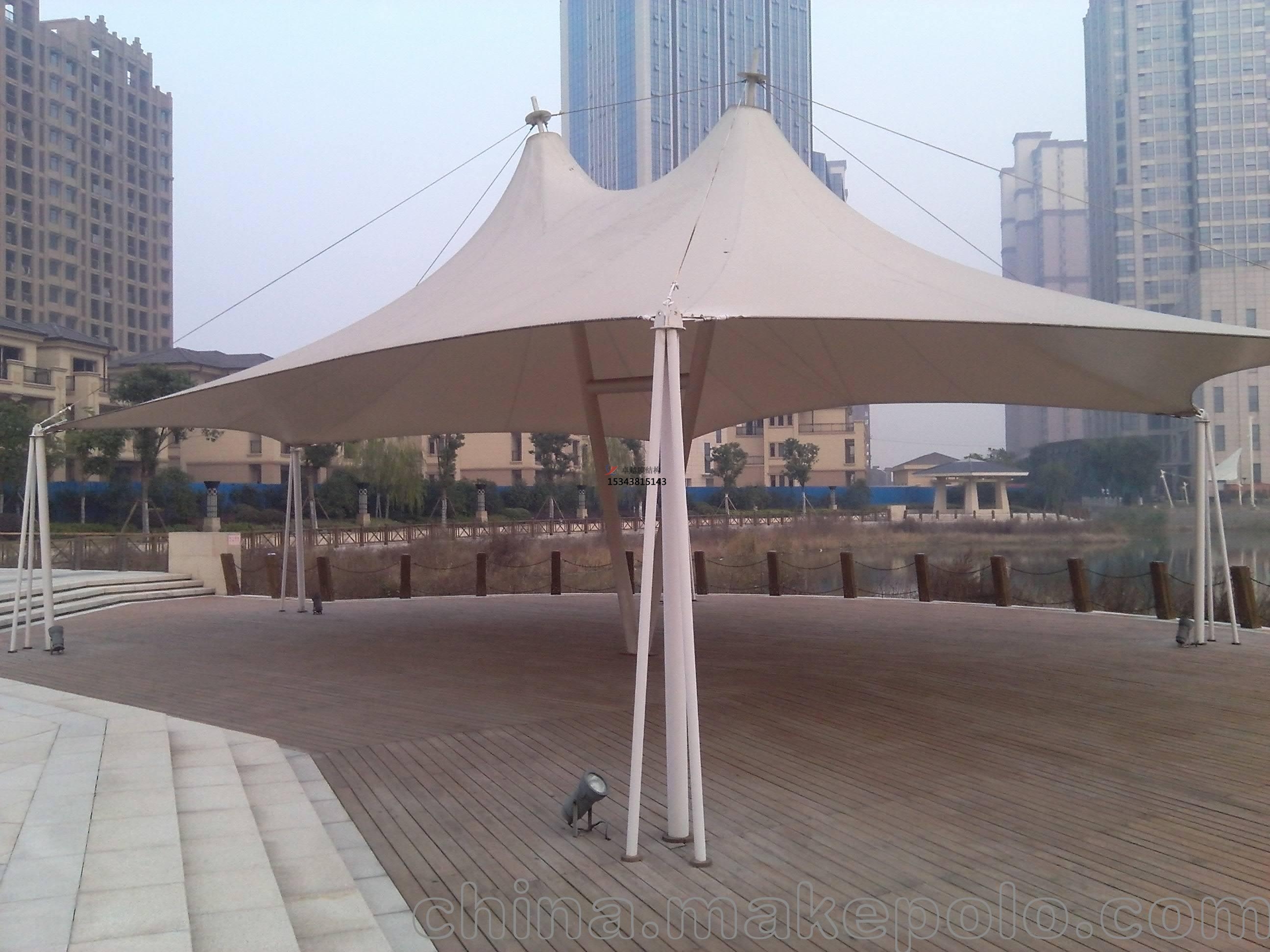 ②公共設(shè)施。膜結(jié)構(gòu)景觀膜結(jié)構(gòu)遮陽棚得到廣泛應(yīng)用的一個重要原因就是其環(huán)保性能符合更好的標(biāo)準(zhǔn),同時也象征一座城市的文化和標(biāo)志性建筑;
