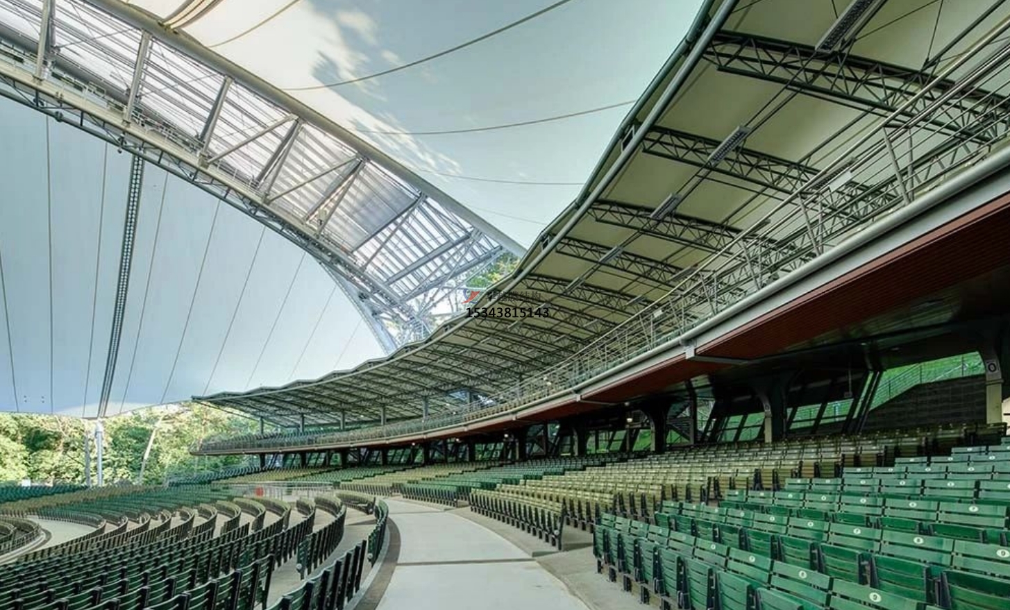 膜材選擇與性能要求:膜結(jié)構(gòu)體育館看臺(tái)公司的首要任務(wù)是選用合適的膜材。優(yōu)質(zhì)的膜材應(yīng)具備輕質(zhì)、高強(qiáng)度、防火、防水、防曬、耐用等特點(diǎn),以確保看臺(tái)的結(jié)構(gòu)安全和使用壽命。同時(shí),還需考慮膜材的透光性、隔熱性能和環(huán)保性能,以提供舒適的觀賽體驗(yàn)和滿(mǎn)足環(huán)保要求。
