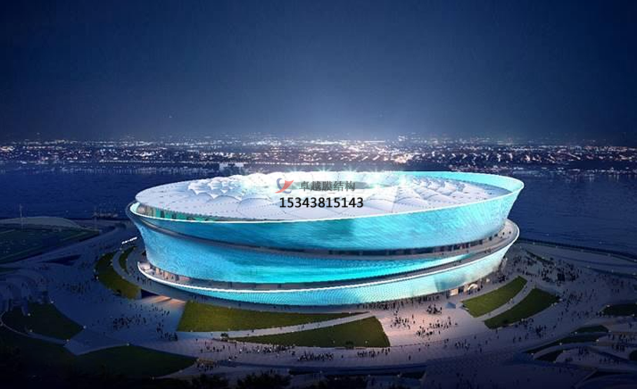 膜結(jié)構(gòu)體育場館的優(yōu)勢:膜結(jié)構(gòu)體育場館優(yōu)勢很多,其中就包含建筑造型優(yōu)美、空間利用率高、可透光性與采光、節(jié)能環(huán)保、施工周期短、經(jīng)濟(jì)性等。膜結(jié)構(gòu)能塑造出自由、輕巧、柔美的造型,如曲面、穹頂?shù)龋瑸轶w育場館帶來獨(dú)特的視覺效果,使其成為城市的標(biāo)志性建筑。還可以創(chuàng)造巨大的無遮擋可視空間,無需內(nèi)部支撐柱,能更好地滿足體育賽事和觀眾觀賽的需求,提高空間利用率。膜材具有良好的透光性,可使場館內(nèi)部獲得充足的自然采光,減少白天對人工照明的依賴,降低能源消耗,同時營造出舒適的室內(nèi)光環(huán)境。膜結(jié)構(gòu)具有優(yōu)異的保溫隔熱性能,能有效降低場館的能耗,此外,膜材可回收利用,符合綠色環(huán)保理念,降低對環(huán)境的影響。相比傳統(tǒng)的混凝土結(jié)構(gòu)或鋼結(jié)構(gòu)體育場館,膜結(jié)構(gòu)體育場館的施工速度更快,安裝便捷,可在較短時間內(nèi)完成建設(shè)。由于膜結(jié)構(gòu)自重輕,基礎(chǔ)和支撐結(jié)構(gòu)相對簡單,可降低建筑成本,同時,其維護(hù)成本也較低。