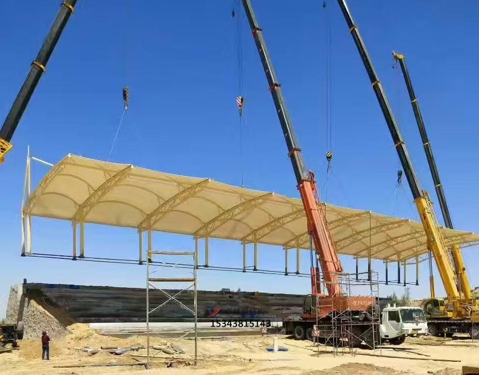 1、雖然膜結(jié)構(gòu)可以形成大面積的覆蓋空間,從方便膜面加工制作及安裝的角度來看,大覆蓋面積的膜結(jié)構(gòu)應(yīng)進(jìn)行適當(dāng)?shù)姆謪^(qū),以減小單片膜面的面積。將膜面分區(qū)的另一個好處是萬一以后發(fā)生膜材撕裂的情況,拆卸修補(bǔ)或更換的操作比較方便。