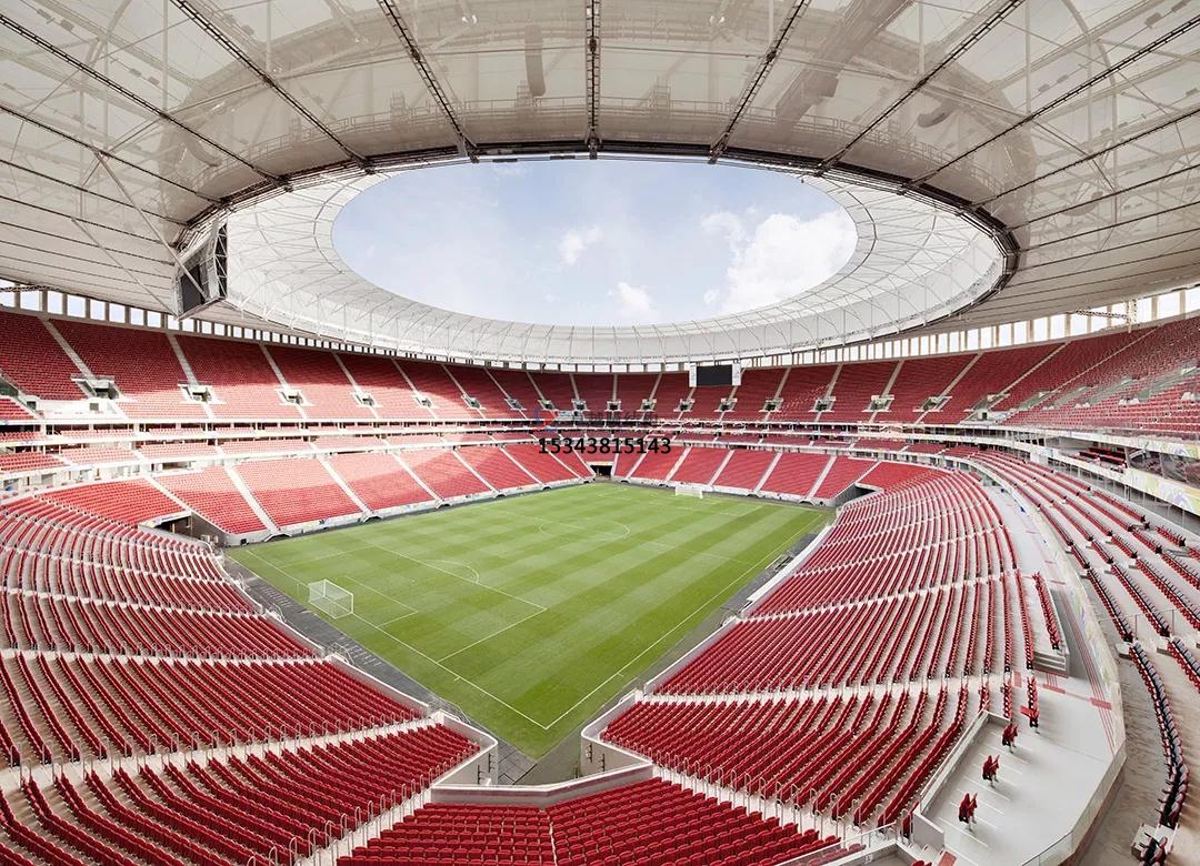 球場膜結構景觀應用形式:其應用形式主要有球場頂棚、看臺設計、球場圍網(wǎng)和休息區(qū)遮陽棚等。在球場頂棚可覆蓋整個球場,為運動員和觀眾遮陽、擋雨,其獨特的曲面造型還能增加球場的觀賞性??磁_設計方面可營造出寬敞、舒適的觀賽環(huán)境,并且易于安裝、拆卸,方便球場維護。膜結構球場圍網(wǎng)輕盈、美觀,既能起到隔離作用,又不會影響球場整體美觀,使球場空間更具通透感。也可為觀眾或運動員提供休息的遮陽場所,造型上可以與球場整體風格相呼應,成為球場景觀的一部分。
