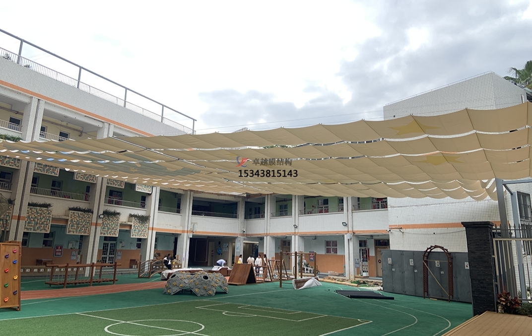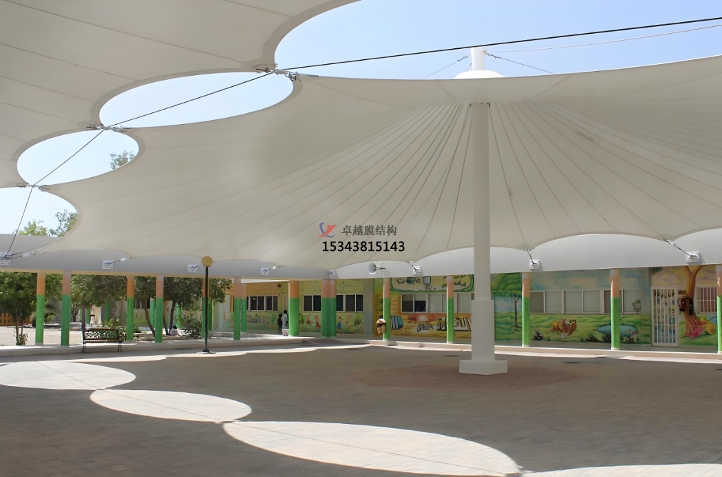 膜材料具有良好的透光性,可以在保證遮陽的同時,讓自然光線柔和地灑入室內(nèi),為孩子們提供充足的日照,有利于他們的視力保護和身心健康。同時,膜結(jié)構(gòu)的設(shè)計通常結(jié)合高效的通風系統(tǒng),確保室內(nèi)空氣流通,即使在炎熱的夏季也能保持室內(nèi)涼爽,為孩子們創(chuàng)造一個舒適的學習環(huán)境。