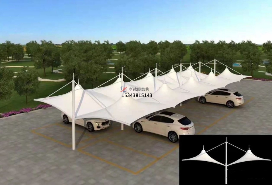 張拉膜膜結(jié)構(gòu)停車(chē)棚可以與景區(qū)的自然環(huán)境相協(xié)調(diào),為游客提供便利的停車(chē)服務(wù),同時(shí)也不會(huì)破壞景區(qū)的景觀。