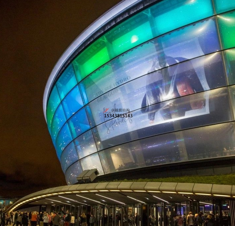 ETFE氣枕具有高度透明性,每層膜的透明度為90-95%,其透明度呈現(xiàn)于大部分太陽光譜中,廣泛應用于機場,高鐵站,商業(yè)廣場,城市建筑景觀等各類標志性建筑屋面系統(tǒng)及外立面裝飾,尤其是結(jié)合LED燈光效果將各類結(jié)構(gòu)設施表現(xiàn)出無限的光彩和亮麗。