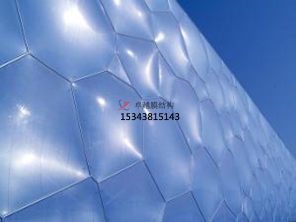 5、氣候適應(yīng)性能;ETFE膜結(jié)構(gòu)材料的工作溫度范圍為-200~150℃,材料熔點(diǎn)為275℃左右。ETFE膜結(jié)構(gòu)材料具有極好的穩(wěn)定性和氣候適應(yīng)性。實(shí)踐表明,暴露在惡劣天氣中15年以上的ETFE膜結(jié)構(gòu)材料,其力學(xué)和光學(xué)性能并沒(méi)有改變。