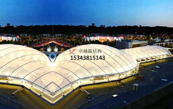 2005年在德國慕尼黑竣工的安聯(lián)球場(66,500 m2),是當時世界上更大的膜結構體育場。整體采用ETFE氣枕膜結構。