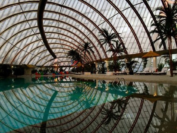 在 2008 年奧運(yùn)會(huì)建筑設(shè)計(jì)上,ETFE 膜結(jié)構(gòu)應(yīng)用就得到完美的體現(xiàn)。更好的游泳中心“水立方”,外表都采用了膜結(jié)構(gòu)——ETFE氣枕膜,藍(lán)色的表面出乎意料的柔軟但又很充實(shí)。水立方的內(nèi)外立面膜結(jié)構(gòu)覆蓋面積達(dá)到10萬(wàn)m2,是世界上規(guī)模更大的膜結(jié)構(gòu)工程。ETFE膜結(jié)構(gòu)的防結(jié)露功能對(duì)游泳運(yùn)動(dòng)尤其重要。