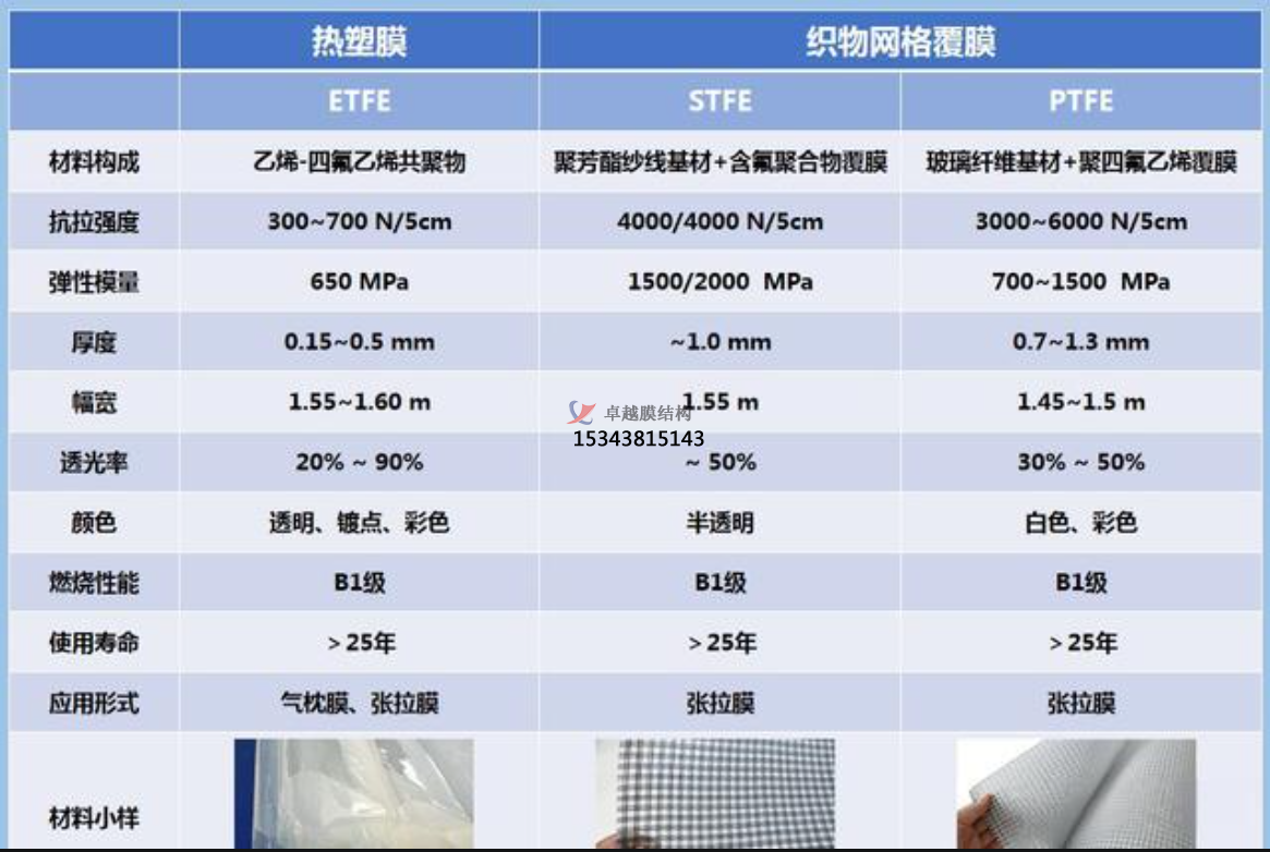 在建筑和結(jié)構(gòu)的方案設(shè)計階段,選擇高透光率的膜材時,常常會對不同種類膜材的特點把握不準。將ETFE、STFE、PTFE高透膜的各自特點進行對比,為高透膜的選擇提供有理有據(jù)的技術(shù)支撐。