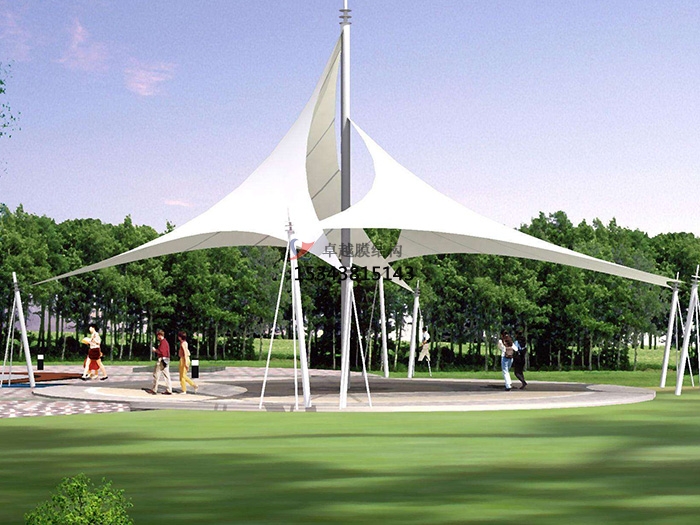 2、張拉膜景觀施工周期比較短,許多工作就可以在廠內(nèi)完成,而現(xiàn)場只要進行裝置就可以,因此施工的工期就縮短很多;