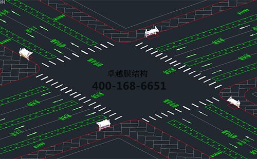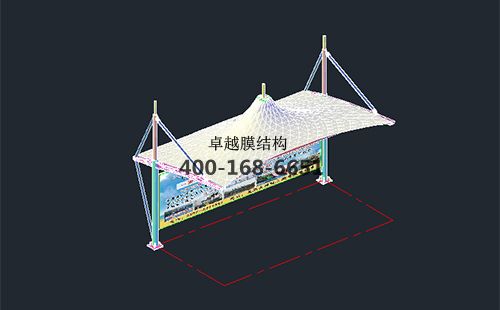 本工程膜材采用白色高端國產(chǎn)膜材PVDF高自潔環(huán)保建筑膜材,鋼結構采用更好的標準Q235B鋼材,表面采用酚醛底漆處理,面漆采用白色鋼結構專用快干磁漆。