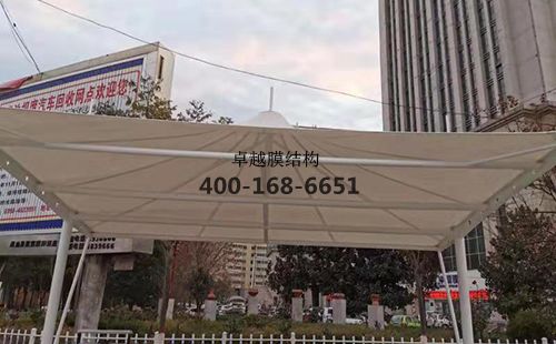 三門峽市澠池等待區(qū)膜結構遮陽棚/罩棚項目工程,膜材展開面積為200平方(4個),工程總造價******元,膜材單價***元(保密,具體請咨詢客服,想了解價格的可以參考《膜結構價格》)