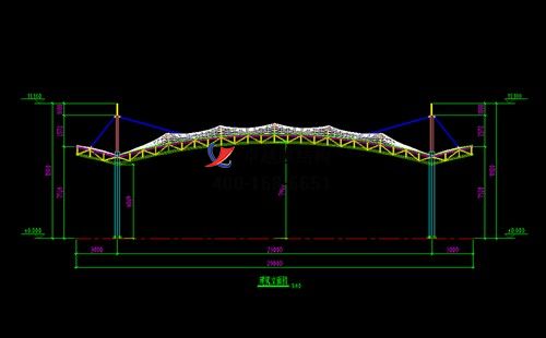 本工程膜材采用白色高端國產(chǎn)星益達PVDF高自潔環(huán)保建筑膜材,鋼結(jié)構(gòu)采用更好的標(biāo)準(zhǔn)Q235B鋼材,表面采用酚醛底漆處理,面漆采用白色鋼結(jié)構(gòu)專用快干磁漆。