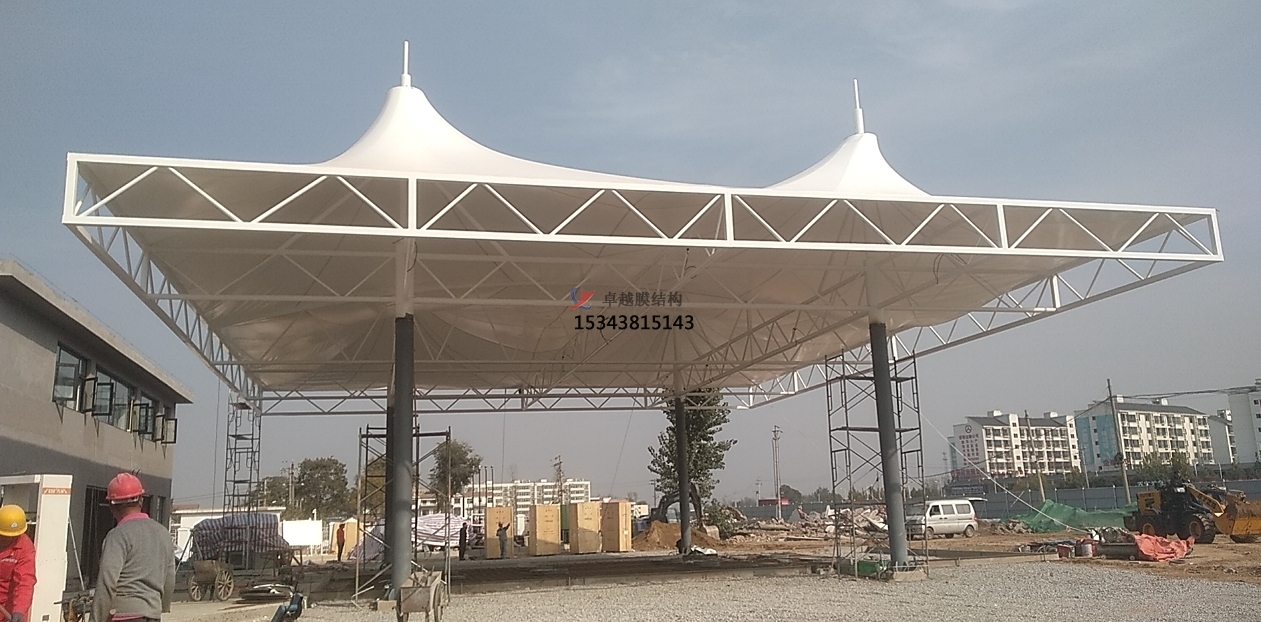 膜結(jié)構(gòu)頂棚采用高強(qiáng)度、耐久性的膜材料,通過鋼骨架、拉索、張力桿等構(gòu)件,形成一種穩(wěn)定的空間形態(tài)。