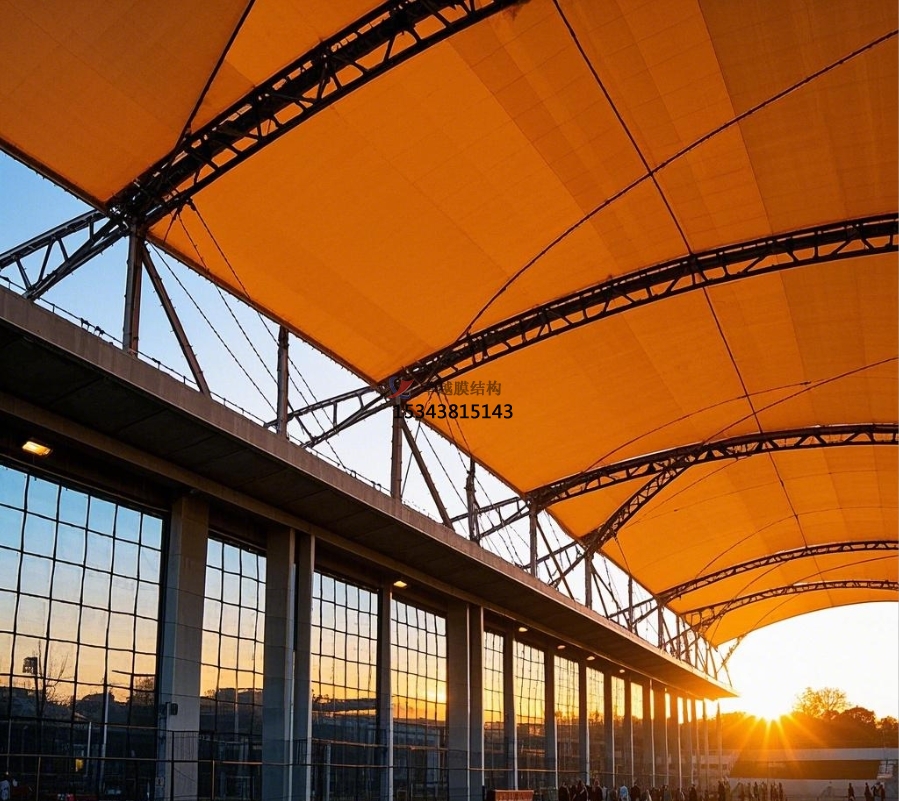 足球場膜結(jié)構(gòu)主要由膜材與支撐結(jié)構(gòu)攜手構(gòu)建。膜材堪稱核心角色,常用的如聚四氟乙烯(PTFE)膜材,不僅具備超強(qiáng)的耐候性,可從容應(yīng)對風(fēng)吹日曬、雨雪侵襲,長期使用也不易老化損壞;其自潔性能更是出色,表面不易沾染灰塵污垢,能始終保持潔凈外觀。乙烯 - 四氟乙烯共聚物(ETFE)膜材同樣表現(xiàn)不凡,擁有良好的透光性,可讓充足的自然光灑入足球場,營造明亮舒適的運(yùn)動環(huán)境,同時具備較高的強(qiáng)度與柔韌性 。