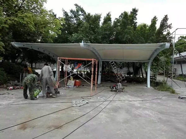 《膜結(jié)構(gòu)充電樁車棚施工圖片》