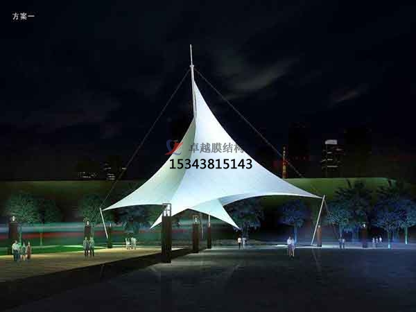 2.抵御天氣的影響:膜屋面的一個重要作用就是抵御各種天氣變化(如日曬、雨淋、風(fēng)雪等)對其內(nèi)部空間的影響,保持建筑物內(nèi)部的舒適性。選擇膜面的形態(tài)和材料時要考慮到所有可能的天氣狀況,并盡可能利用建筑本身等被動方法來減少能量的消耗。多孔膜材可用作遮蔽結(jié)構(gòu)。它可以控制光的透射和反射,使室內(nèi)擁有散射光,并且促進自然通風(fēng),使屋面溫度與周圍環(huán)境的溫度相同,并避免向下的熱輻射。為了抵擋風(fēng)雪,膜面的外形應(yīng)使排水通暢使捷,避免在其上形成水兜或雪的堆積。在施加預(yù)應(yīng)力前的安裝成形階段,張拉膜結(jié)構(gòu)對這些荷載十分敏感。為了能將雨水排除,膜材和接縫須密封防水,膜邊緣也**進行特殊的細部設(shè)計,以防止雨水進入室內(nèi)。