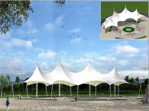 項(xiàng)目結(jié)構(gòu)形式:四周軟邊骨架式膜結(jié)構(gòu)景觀小品