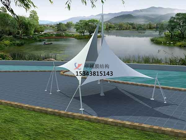 2、景觀膜結(jié)構(gòu)是目前發(fā)展很快的一種新型空間結(jié)構(gòu),是一種效率極高的張力集成體系,可以充分發(fā)揮鋼索的強度與張拉整體結(jié)構(gòu)的空間作用。它通過鋼骨架、鋼索與膜材共同受力形式穩(wěn)定曲面來覆蓋建筑空間,具有高度的形體可塑性和結(jié)構(gòu)靈活性,即通過對膜材內(nèi)部施加一定的預(yù)張力,使其具備了抵抗外荷載能力,從而充當(dāng)結(jié)構(gòu)材料的一種結(jié)構(gòu)體系。我公司先后在撫順地區(qū)承接了撫順人民廣場景觀、撫順市生活廣場景觀、撫順新湖國際花園景觀小品的設(shè)計施工,簡介如下: