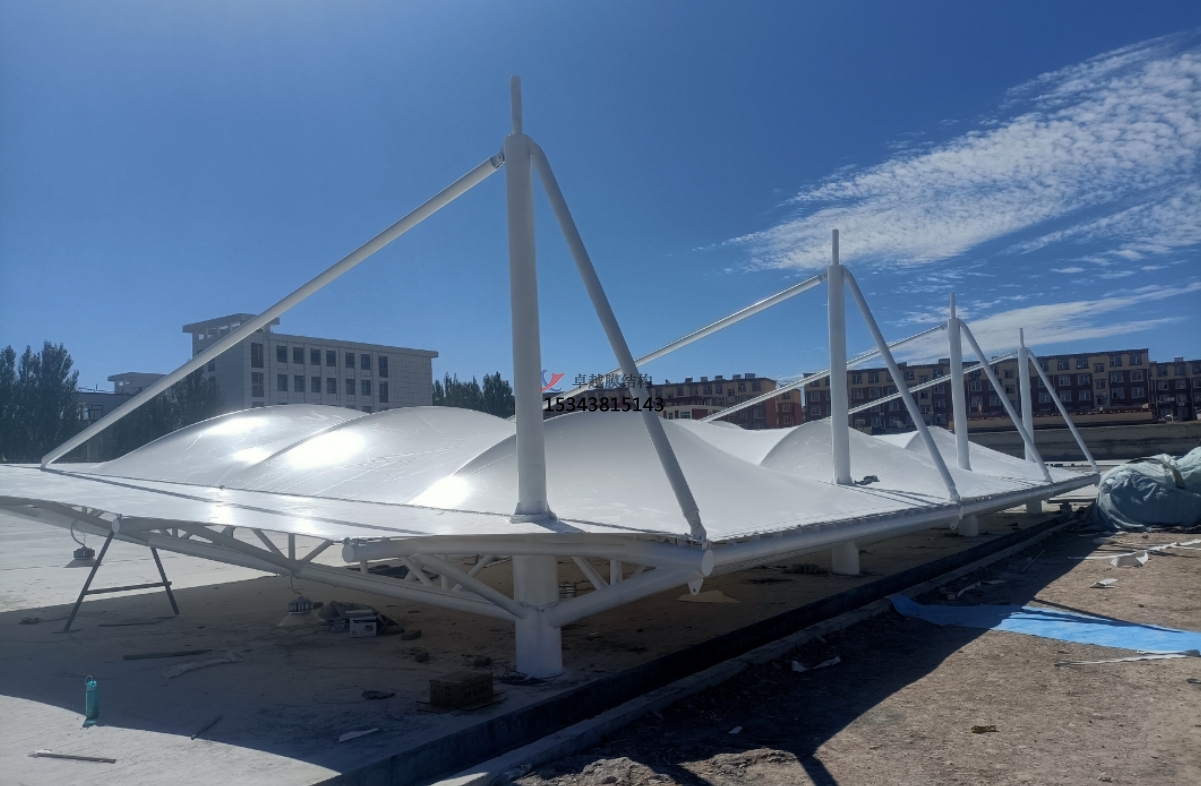 膜結(jié)構(gòu)材料具有較好的耐久性和自潔性。一般情況下,只需要定期進行簡單的清潔和檢查,不需要像傳統(tǒng)建筑結(jié)構(gòu)那樣頻繁地進行大規(guī)模的維修和保養(yǎng)。選擇具有自潔性的膜材,表面的自潔涂層可以在雨水的沖刷下自動清潔灰塵和污漬,大大降低了維護成本。
