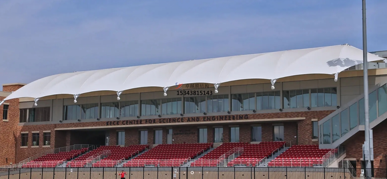 膜結(jié)構(gòu)體育看臺頂棚是一種新型的建筑結(jié)構(gòu),其獨特的設(shè)計使其能夠在提供卓越視線遮擋的同時,實現(xiàn)對場館內(nèi)熱量的高效儲存與利用,以確保體育比賽的公正與安全。