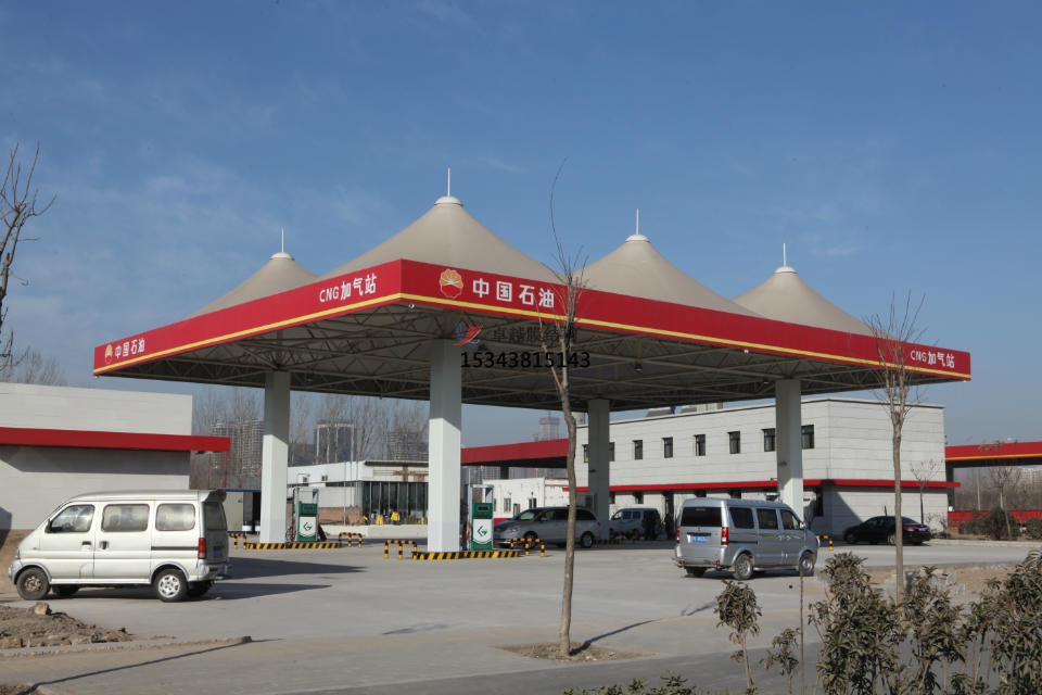加油站膜結(jié)構(gòu),一般是指安裝在加油站的膜結(jié)構(gòu)頂棚。膜結(jié)構(gòu)頂棚因其自重輕,具有良好的受力特點,所以成為大跨度空間結(jié)構(gòu)的主要形式之一,加油站膜結(jié)構(gòu)也屬于其范疇。