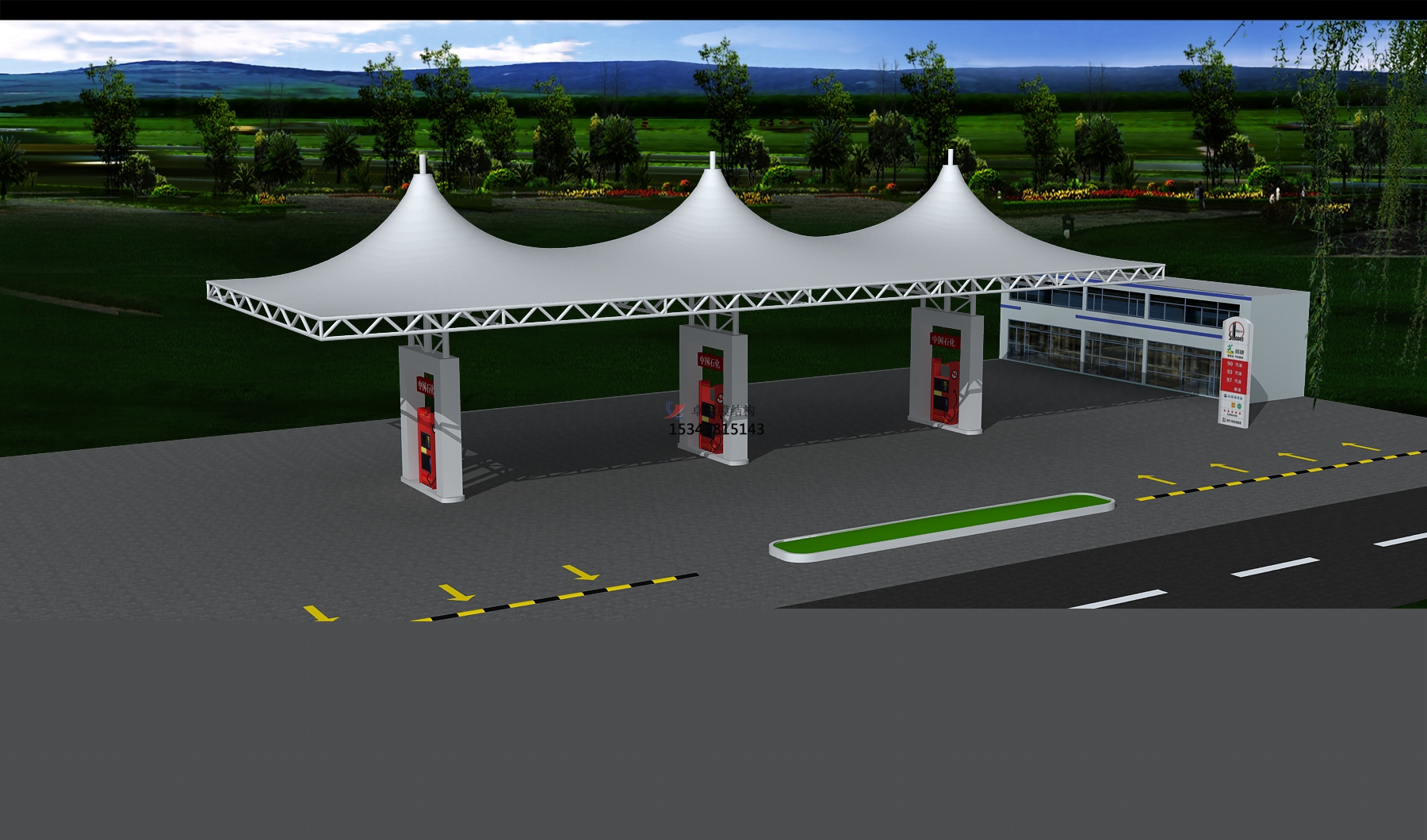 項目概況:中國石油化工集團(tuán)有限公司(以下簡稱公司)的前身是成立于1983年7月的中國石油化工總公司。1998年7月,按照黨中央關(guān)于實施石油石化行業(yè)戰(zhàn)略性重組的部署,在原中國石油化工總公司基礎(chǔ)上重組成立中國石油化工集團(tuán)公司,2018年8月,經(jīng)公司制改制為中國石油化工集團(tuán)有限公 該站領(lǐng)導(dǎo)決定建設(shè)張拉膜雨棚,我們憑借豐富的經(jīng)驗在眾多競爭者中脫穎而出,更終也向該加油站交上了完美的答卷。