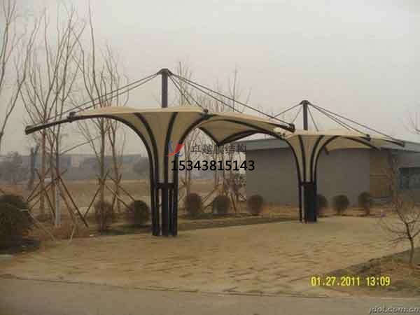 膜結構的柔性使其在任一荷載作用下均以更有利的形態(tài)承載。當然,結構的布置和形狀要根據(jù)荷載情況來進行設計和調整。設計要確何膜面與其輔助結構協(xié)調工作,以避免力在膜面或輔助結構上集中而達結構破壞的臨界值。