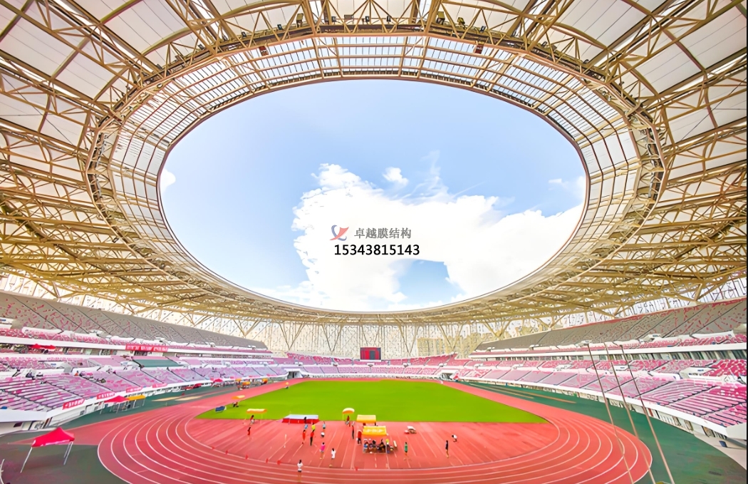 在體育場(chǎng)館及其他設(shè)施采用內(nèi)膜,不僅可以改善透光、吸音及保溫作用,還可以改善建筑外觀,可以將復(fù)雜的鋼結(jié)構(gòu)、馬道及各種管道等進(jìn)行遮擋,采用高通透性的網(wǎng)格膜可以使鋼結(jié)構(gòu)變得若隱若現(xiàn)。