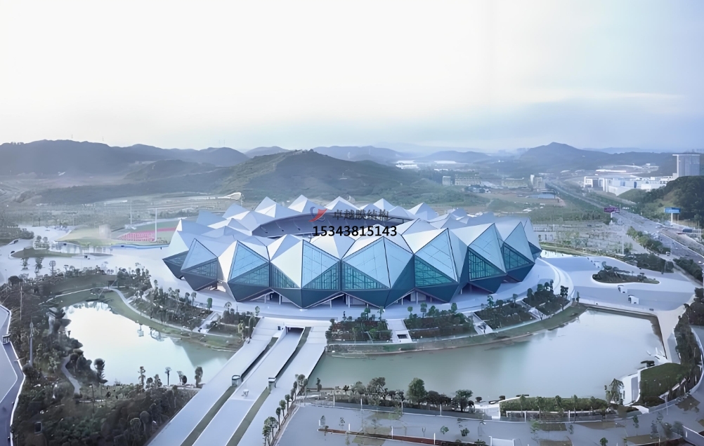 深圳大運(yùn)會(huì)體育中心一場(chǎng)兩館采用空間折板結(jié)構(gòu),外觀類似“鉆石”。外層采用陽(yáng)光板及玻璃幕墻,內(nèi)層采用透光率高、吸音率強(qiáng)、自潔性能好的網(wǎng)格內(nèi)膜材料。深圳大運(yùn)會(huì)體育中心的網(wǎng)格內(nèi)膜面積超過10萬平方米。
