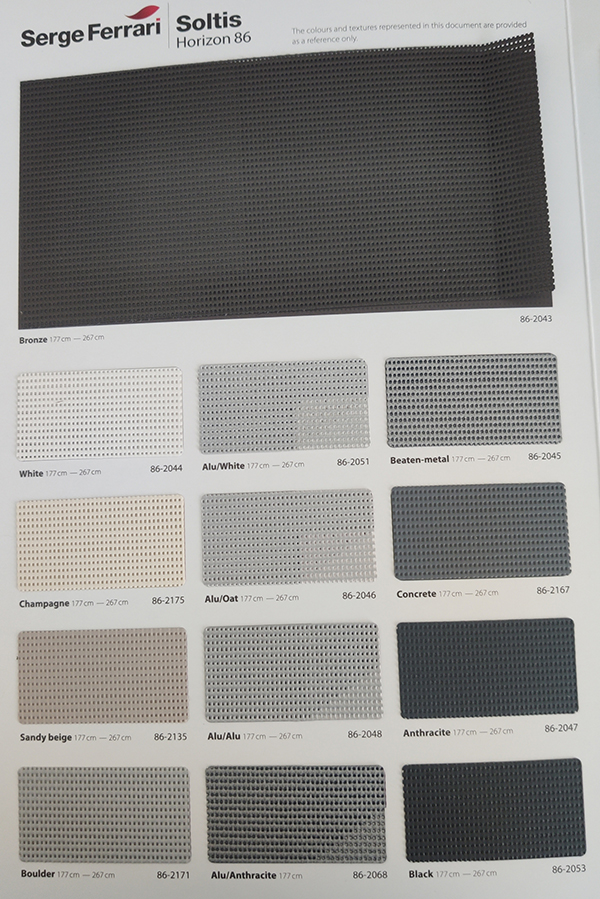 紗帝飾:紗帝飾面料為抵擋熱量和光線的真正盾牌,依靠其微型通風結構,調節(jié)陽光的熱效應,有效地防眩目。紗帝飾面料具有46種顏色,可為所有建筑,無論是 公眾場合還是私人住宅提供配套的眾多色彩和多種用途。法拉利預應力專利制造技術給紗帝飾織物帶來尺寸恒定,不會變形,無需加固自然抗撕拉,耐久和抗塵,占 地面積小等獨有特性,更顯出紗帝飾面料對建筑物技術性遮陽無可匹敵的優(yōu)勢。