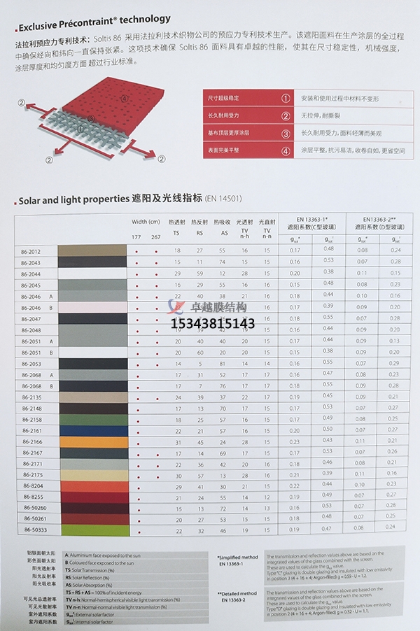 法拉利膜材十多年來,法拉利(PVDF)表面處理的復合膜材被應用在全世界重要的織物建筑工程中?,F(xiàn)在,第代膜材再次確認了這一出眾材料性能的更新發(fā)展。法拉利研發(fā)了第代材料正是為了滿足建筑師和業(yè)主在新世紀之初對于織物建筑提出的要求。這一 全新的膜材得益于更新的科研技術,即將PVDF和硬化介體完美地結合。這種特殊的結合明顯地提高了材料的機械強度、使用壽命,并能長期保持織物建筑的原始 美觀。第代膜材在積累了10多年的經驗的基礎上,可以提供專業(yè)保證。法拉利現(xiàn)在能夠根據要求和每個項目的具體情況,提供12年質量保證 (PRECONTRAINT702除外)。