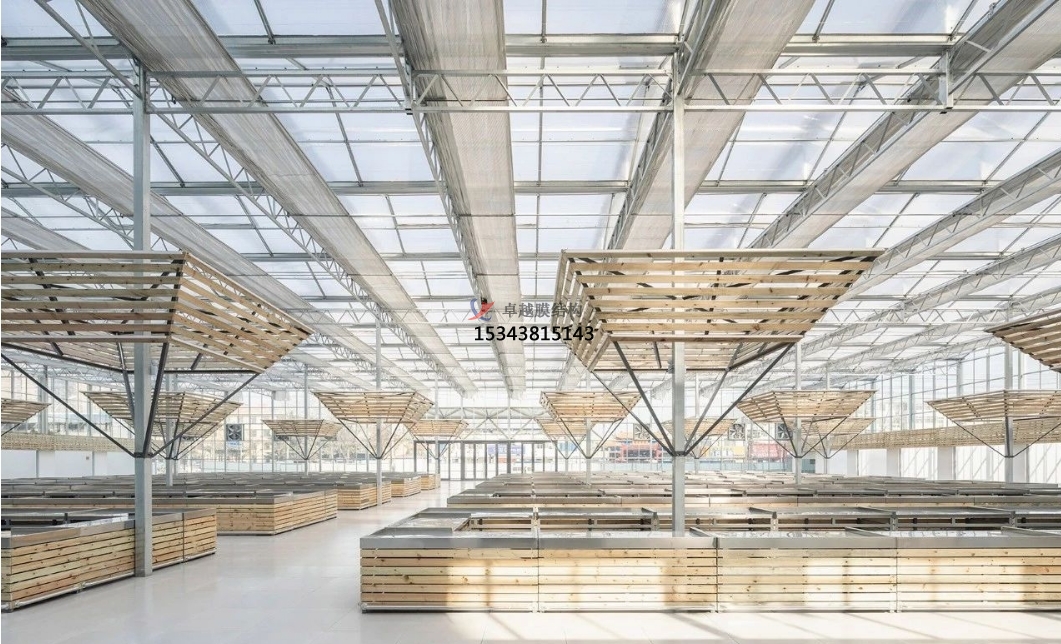 膜結構頂棚采用的膜材具有高強度、耐腐蝕、抗老化等特點,能夠在惡劣的天氣條件下保持穩(wěn)定的性能,確保市場的正常運營。同時,膜結構頂棚還具有良好的防火性能,能夠有效降低火災等安全事故的發(fā)生概率,保障市場內人員和財產的安全。