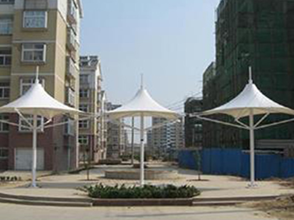膜結(jié)構(gòu)車棚造型簡潔大方,外觀雅致飄逸,結(jié)構(gòu)輕盈,經(jīng)久自潔、節(jié)能減耗,經(jīng)濟適用,維修簡單。除了一般雨蓬不可比擬的實用、耐用、遮風擋雨的功能外,膜結(jié)構(gòu)雨蓬更是一座雕塑,一件藝術(shù)品,給人美的視覺享受。其柔美,其曲線,其剛?cè)岵?,其豐富造型,其潔白無瑕,讓人眼前一亮,回味悠長。