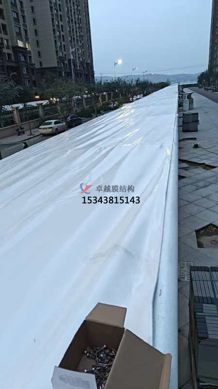 ?。簭埨瓿珊螅瑢?duì)連接件再次緊固檢查,確保連接牢固,對(duì)膜材邊緣特殊處理(如密封、防水處理) 。
