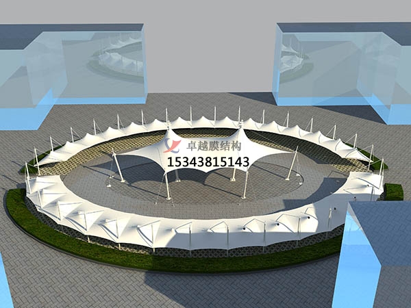 2、耐用性:由于高強(qiáng)度的膜材出現(xiàn),再加上張拉技術(shù)的應(yīng)用,使膜結(jié)構(gòu)車棚抵御風(fēng)雨的能力是一般雨蓬不可比擬的。有的車棚采用永久性膜材,可使用三、四十年。特別是遇到劇烈的暴風(fēng)雨天氣,膜結(jié)構(gòu)建筑巍然不動(dòng),毫發(fā)不損。
