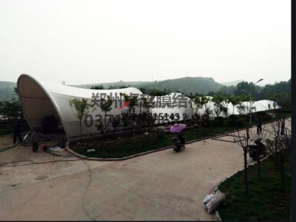 膜結(jié)構(gòu)是用高強度柔性薄膜材料經(jīng)受其它材料的拉壓作用而形成的穩(wěn)定曲面,能承受-定外荷載的空間結(jié)構(gòu)形式。其造型自由、輕巧、柔美,充滿力量感,阻燃、制作簡易、安裝快捷、節(jié)能、易于、使用安全等優(yōu)點,因而使它在世界各地受到廣泛應(yīng)用。