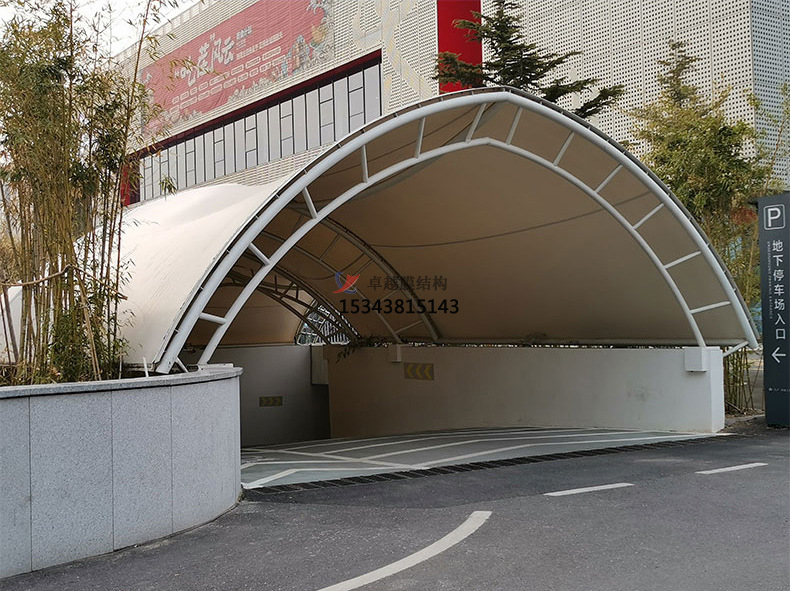 該小區(qū)的入口通道采用了雙層膜結(jié)構(gòu)的設(shè)計(jì),外層膜采用高強(qiáng)度聚酯纖維材料,內(nèi)層膜采用聚乙烯材料,兩層膜之間填充了聚氨酯泡沫材料,具有優(yōu)秀的實(shí)用性和功能性,為居民的停車提供了便利。在膜材的選擇上,采用了環(huán)保材料,符合現(xiàn)代環(huán)保理念。此外,自動(dòng)化控制系統(tǒng)的使用,也使得遮陽(yáng)雨棚更好的利用。以保證入口通道的舒適度和安全性。整個(gè)膜結(jié)構(gòu)造型簡(jiǎn)潔、大方,線條流暢,呈現(xiàn)出現(xiàn)代科技感。膜結(jié)構(gòu)的使用不僅提高了小區(qū)的安全性能,還增加了小區(qū)的景觀價(jià)值,成為小區(qū)的一大特色。
