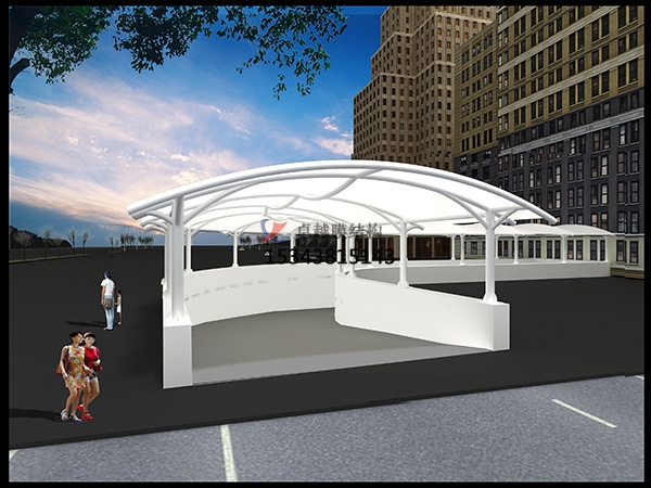 6、景觀設(shè)施:膜結(jié)構(gòu)以其特殊的建筑表現(xiàn)手法,主要體現(xiàn)在造型、漫射透光性、豐富多彩,可廣泛應(yīng)用于入口、標志性小品 、步行街、停車場等,其他建筑特性無須較高要求。
