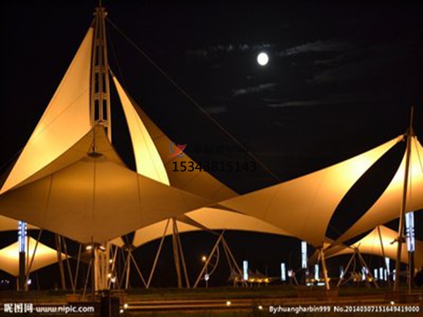 3.因為膜材的自身特性,在燈火的照射下能構成艷麗繽紛的美景。景象膜結構它不僅能夠供給遮陽擋雨的空間,更因為這種輕盈優(yōu)美的造型能給人們帶來時髦、輕松的休閑感受。