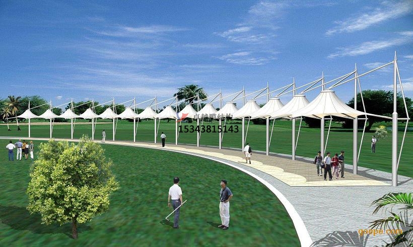 膜建筑屋面重量僅為常規(guī)鋼屋面的1/30,膜結(jié)構(gòu)停車篷這就降低了墻體和基礎(chǔ)的造價。同時膜建筑奇特的造型和夜景效果有明顯的“建筑可識性”和商業(yè)效應(yīng),其價格效益比更高。