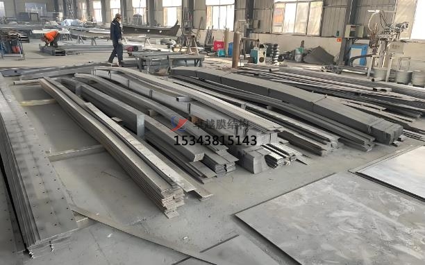 膜結構生產(chǎn)的材料和加工:膜結構的主要材料包括膜材和鋼結構。根據(jù)設計要求,采購合適的膜材。常見的膜材有聚四氟乙烯(PTFE)膜材、聚氯乙烯(PVC)膜材等,采購時需注意膜材的質量、性能和規(guī)格是否符合要求。我們的膜材通常采用進口材料,具有高標準的阻燃、自潔和耐久性能。鋼結構部分則根據(jù)設計圖紙進行切割、焊接和打磨,確保其尺寸精確和表面光滑。我們會根據(jù)支撐結構的設計要求,采購鋼材、鋁合金等材料,并進行檢驗和預處理,如除銹、防腐處理等。膜材的加工包括裁剪和焊接,使用先進的裁剪及焊接生產(chǎn)線進行,確保膜材的拼接精確和牢固。鋼結構部分則通過CAD編輯到等離子切割,割出形狀后,用扁鐵包邊、打磨和刷油漆,確保其質量和外觀。膜結構的加工制作,膜結構的展開形狀和尺寸,結合膜材的幅寬和特性,進行裁剪設計,確定每一塊膜片的形狀和尺寸,同時考慮到拼接縫的位置和方式,以減少材料浪費和提高結構性能。裁剪會使用到專業(yè)的裁剪設備,如數(shù)控裁剪機,按照裁剪設計的圖紙對膜材進行精確裁剪。裁剪過程中要注意控制裁剪精度,避免出現(xiàn)尺寸偏差和邊緣損傷。拼接縫合,將裁剪好的膜片通過熱合、縫合等方式進行拼接,形成完整的膜結構。拼接處要保證密封性能和強度,通常采用專用的膜材焊接設備或縫紉機進行加工。支撐結構的制作,支撐結構也叫預埋件,預埋件的制作根據(jù)膜結構的大小和設計要求進行,厚度和長寬由CAD編輯到等離子切割而來?;A施工包括放線、切割地面、挖機破碎地面、混凝土放預埋板和地面修復等步驟。安裝過程中,將膜材與鋼結構進行精確連接,確保膜結構的張拉和固定,使其在實際應用中能夠承受各種環(huán)境條件,確保膜結構的穩(wěn)固安裝。
