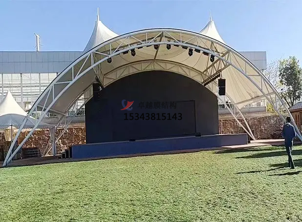 造型設(shè)計:膜結(jié)構(gòu)舞臺的造型需要結(jié)合建筑膜材的特性和具體需求進行設(shè)計,以實現(xiàn)獨特的外觀和空間效果。