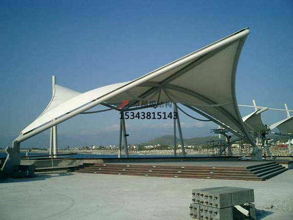 10、這種結構使用廣泛,膜結構車棚、看臺、收費棚、球場、通道或進口、公園景觀小品、甚至能作污水池加蓋除臭及沼氣池儲氣罐之用。