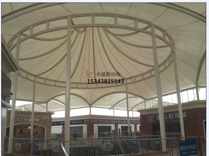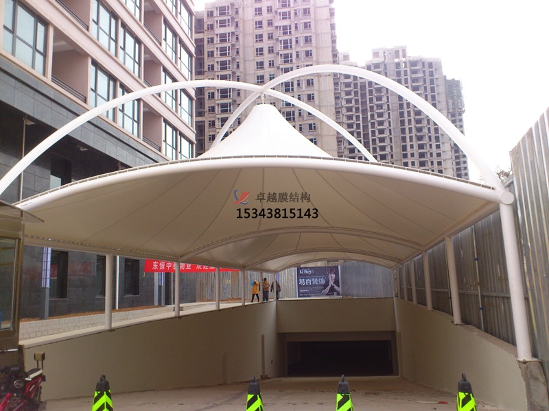 膜結(jié)構(gòu)雨棚屬于軟性材料,本身自動(dòng)輕,耐高溫、抗紫外線,使用壽命長達(dá)15至20年。