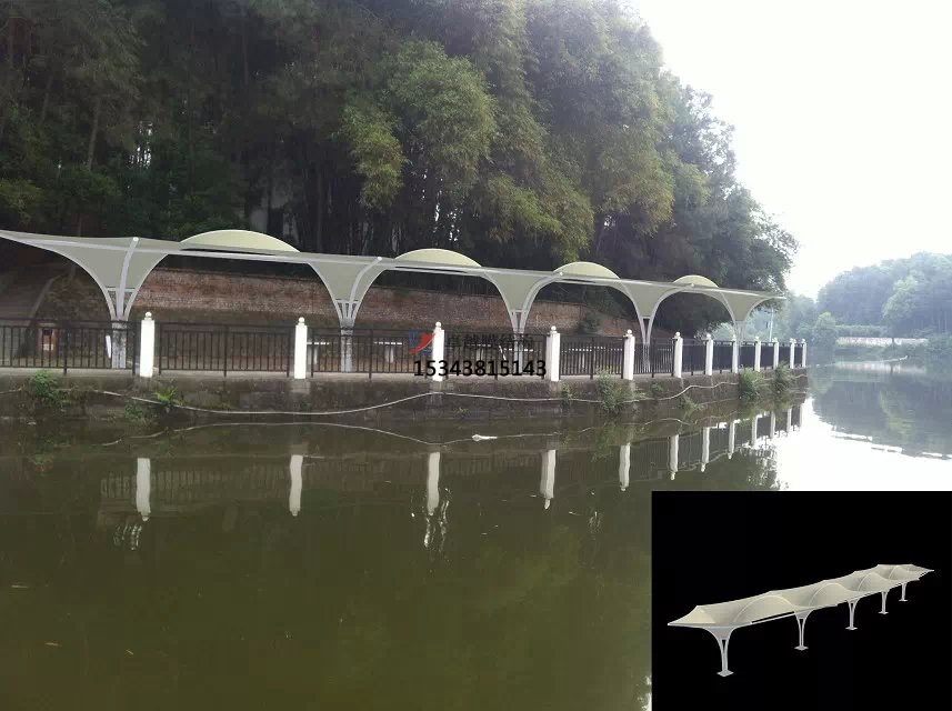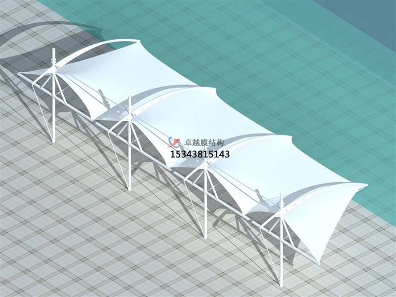 膜結構遮陽棚,即是用膜材制作出來的遮陽棚。膜材的種類不一,通常有PVC、PTFE、PVDF、ETFE等。從膜材的特性出發(fā),遮陽棚可以設計成各種形狀,造型獨特優(yōu)美,沉穩(wěn)大氣。下面我們一起來欣賞下!
