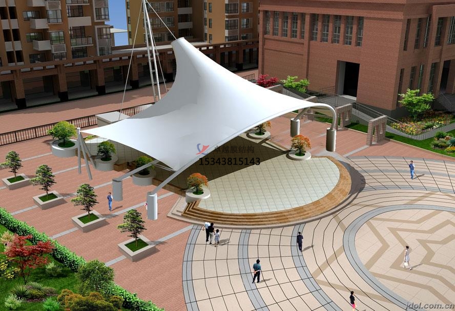 近年來,隨著建筑空間觀念的日益深化以及科學(xué)手段的不斷提高,膜結(jié)構(gòu)已是現(xiàn)代建筑環(huán)境學(xué)發(fā)展的主流。它可以構(gòu)成單曲面,多曲面等不同建筑結(jié)構(gòu)形式,滿足了建筑師們對(duì)建筑與美學(xué)高度統(tǒng)一的要求。 由于膜材的光透性,白天陽光可以透過膜材形成漫射光,使舞臺(tái)下如同自然,能很好地節(jié)約能源。夜間彩燈打射形成的絢爛景觀也讓市民體驗(yàn)到不一樣的感覺。膜材具有防水 性和遮陽效果,而不受到日曬雨淋,因此膜結(jié)構(gòu)舞臺(tái)能創(chuàng)造出與自然環(huán)境相媲美的空間形式。