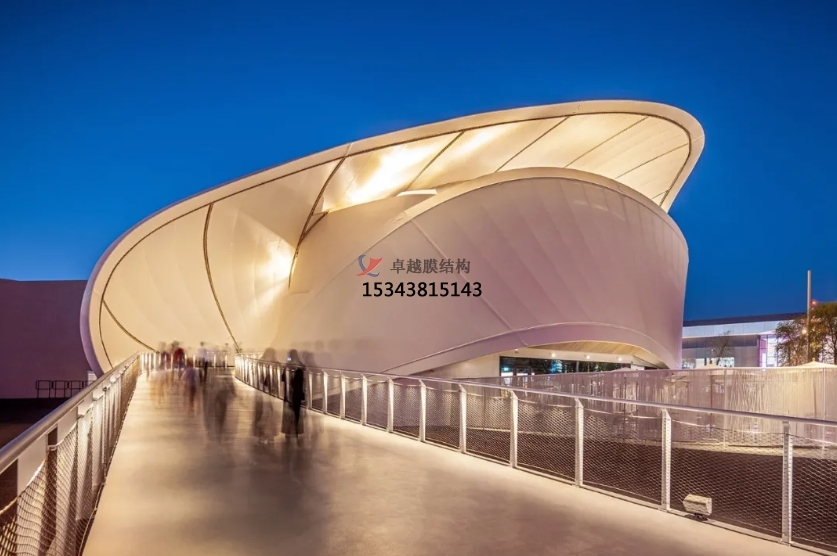 膜結構建筑是21世紀最具代表性和前景的建筑形式之一,它打破了純線性建筑風格的格局,以其獨特優(yōu)美的曲線形狀, 呈現出柔和的力量美感,同時賦予設計師更多的想象力和創(chuàng)作空間。