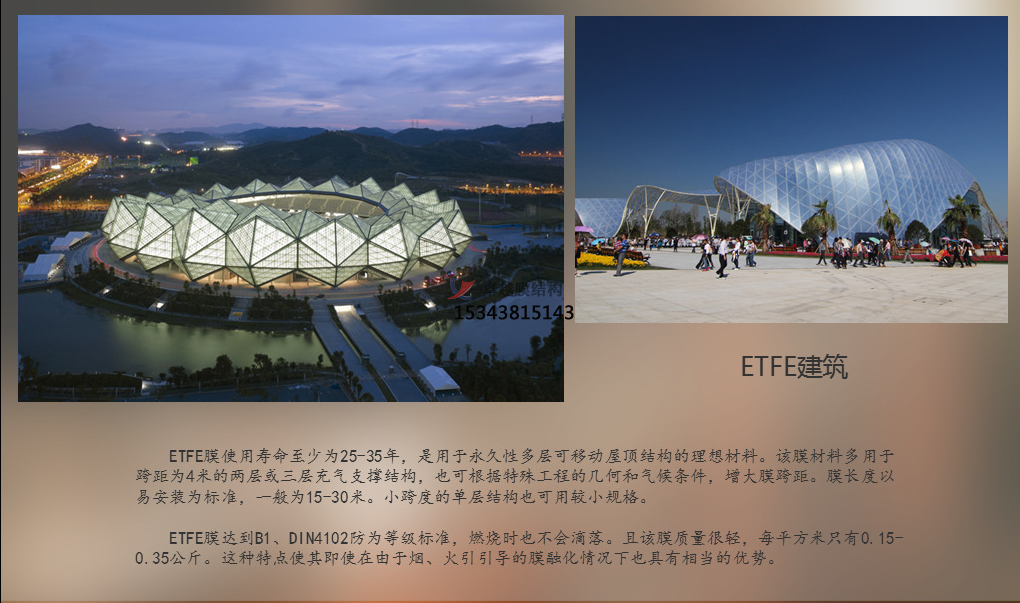 - 耐久性能好:具有抗紫外線、抗霉變等性能,如 PTFE 膜材壽命可達 30 年以上1。