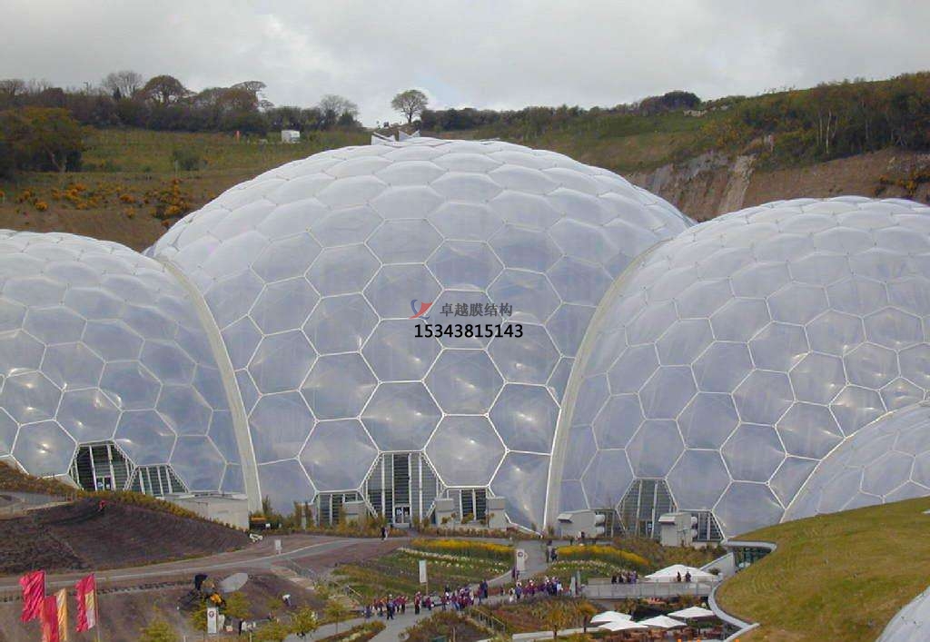 “ETFE”是英文Ethylene Tetra Fluoro Ethylene的縮寫,中文名稱為乙烯-四氟乙烯共聚物。ETFE膜材具有較高的抗拉強(qiáng)度、抗沖擊強(qiáng)度及抗撕裂能力。ETFE膜材的厚度通常在0.05~0.25mm。隨著厚度的增加,膜材的硬度將增加,同時(shí)也更脆,增大了加工難度。ETFE材料的典型用法是,將兩層或三層膜材“焊接”在一起,運(yùn)送到工地,然后充氣使它們膨脹成氣枕。